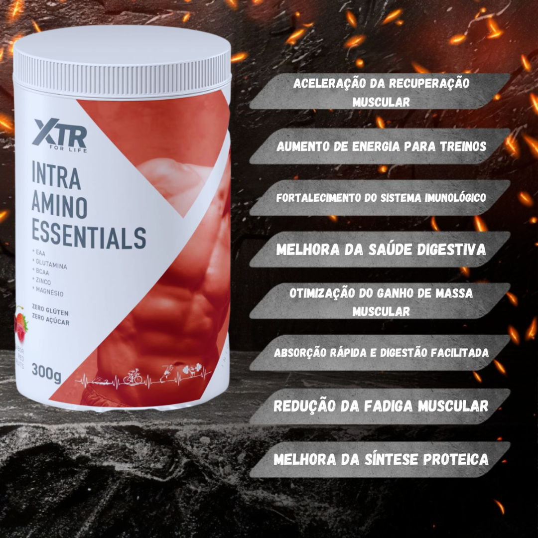 Aminoácidos essenciais não são produzidos pelo corpo, por isso a importância de serem ingeridso em dietas. O INTRA AMINO ESSENTIALS é composto por aminoácidos puros, sem lactose, sem gorduras, glúten ou sódio, o que torna sua absorção mais rápida, facilita a digestão, otimiza o ganho de massa muscular e acelera a recuperção.
